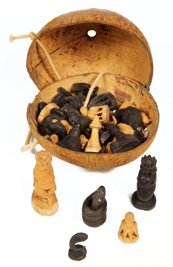 Chess set carved by Hugh Herd while a prisoner at Changi. Te Papa collection