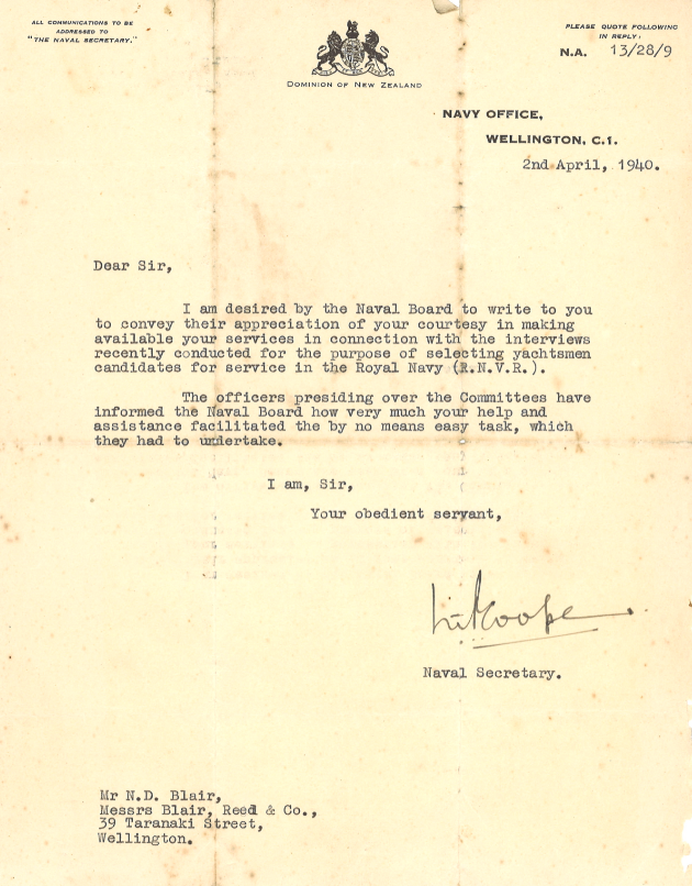 Blair was in the Navy for the duration of WWII, and the reserve for the following five years. Here is an extract from The Official History of New Zealand in the Second World War 1939–1945: